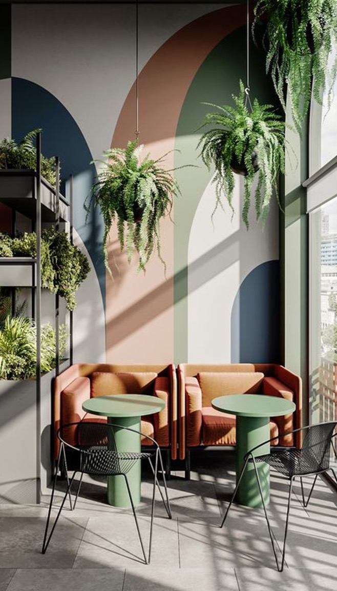 Biophilic design incorporates elements of nature into interior spaces, such as plants, natural light, and natural materials. This approach promotes a sense of well-being and connection to nature.